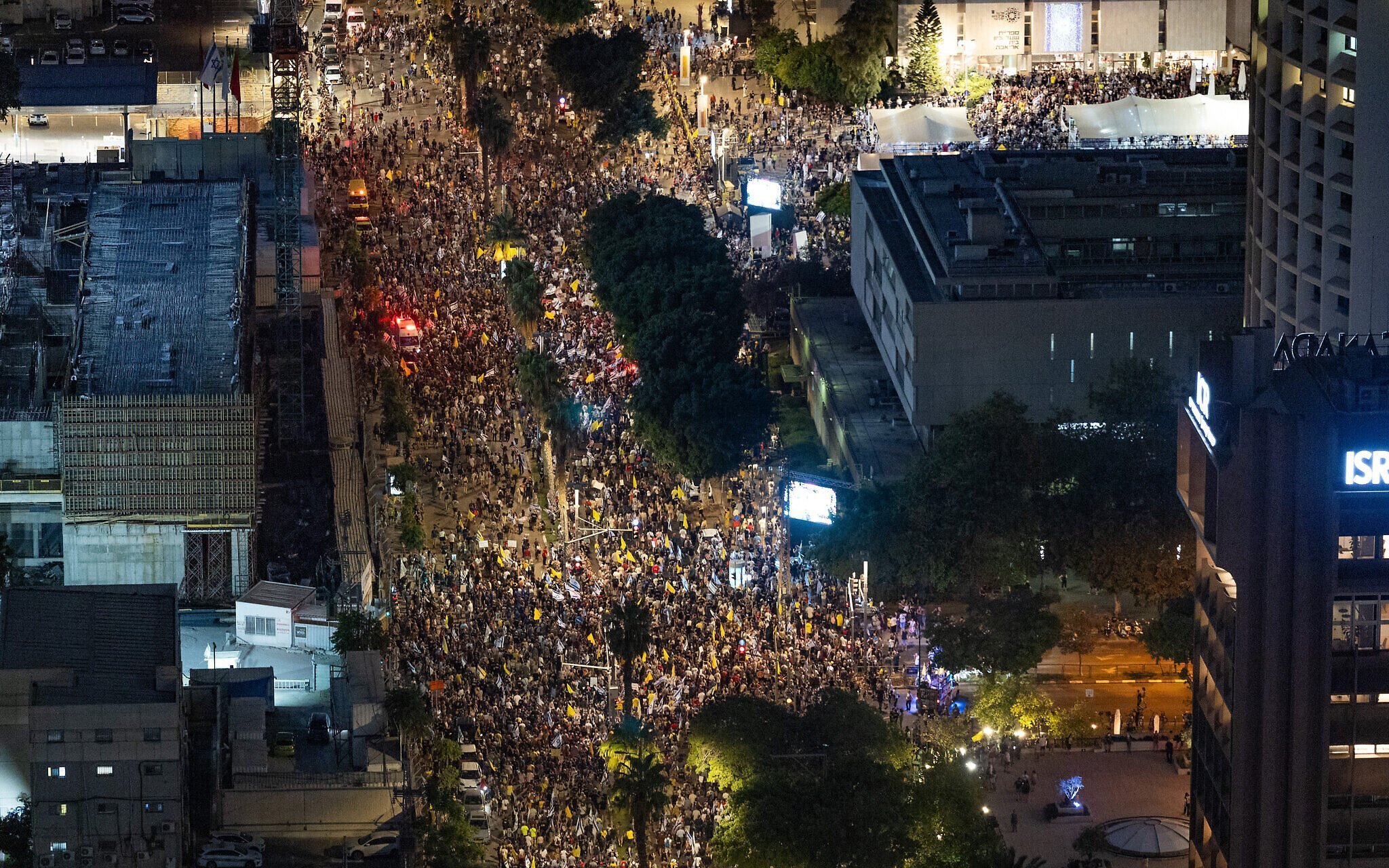 当地时间26日晚间,大批以色列民众聚集在特拉维夫街头举行,敦促以政府尽快结束加沙冲突,让以色列被扣押人员能够早日获释。据组织方透露,当晚共有35万人参与。(详情)