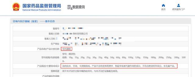 对于该产品的注册及备案情况,该客服称产品已在国家药品监督管理局正规备案,并已在产品信息页公示。记者发现,该产品宣传界面宣称是由“2024年诺贝尔生理学或医学奖的获奖人监制研发”,而实际上该产品所属公司归属于河南一家生物科技公司。在国家药监局网站上查询到的信息显示,该产品实名为“导光凝胶”,成分由纯化水、甘油和卡波姆组成。